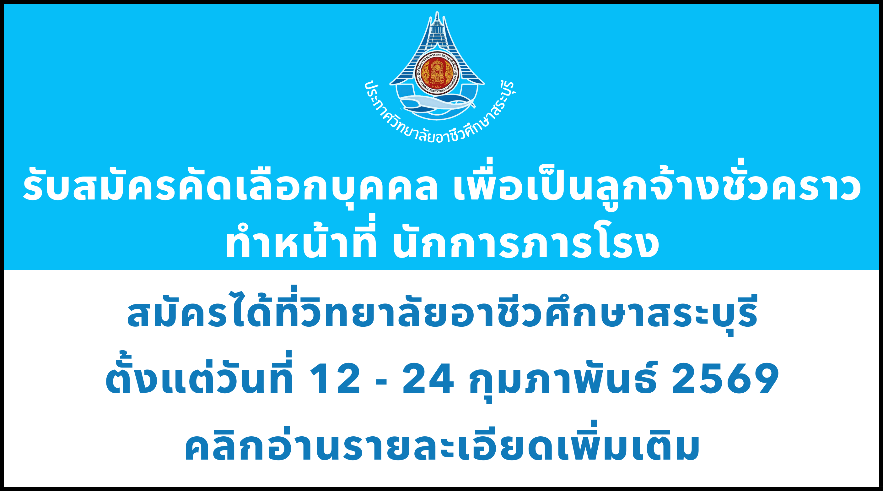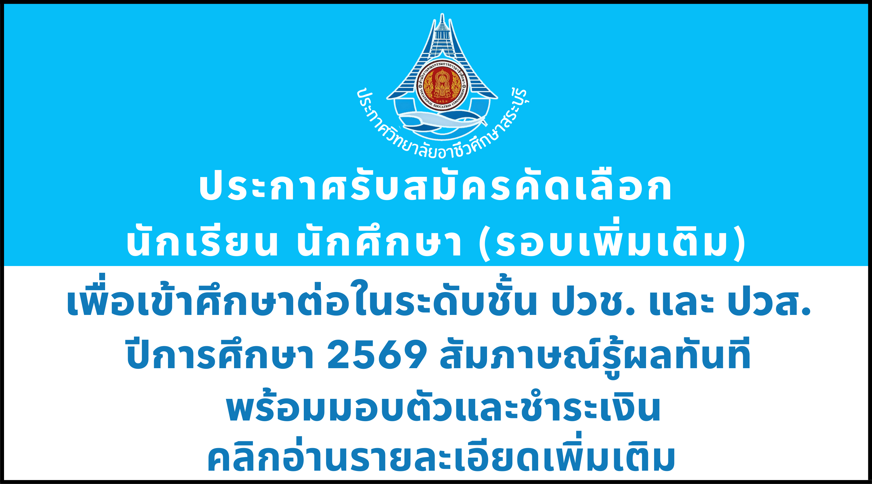 ประกาศรับสมัครคัดเลือก นักเรียน นักศึกษา (รอบเพิ่มเติม) (17/ก.พ./69)