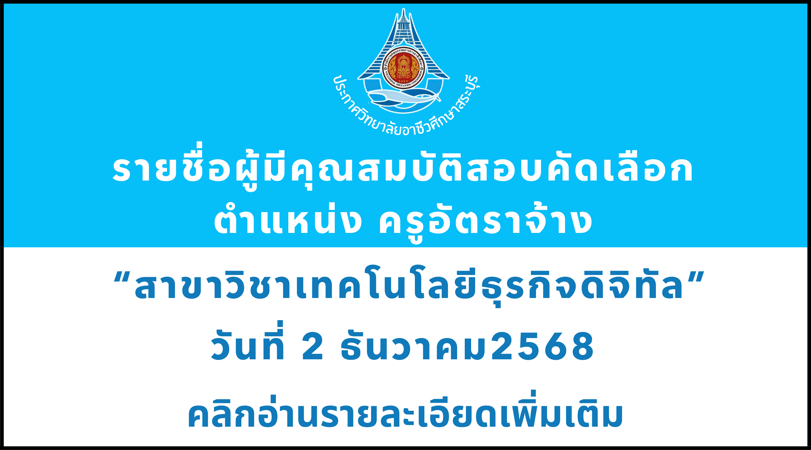 รับสมัคร "ครูอัตราจ้าง” สาขาวิชา เทคโนโลยีธุรกิจดิจิทัล (20/พ.ย./68)