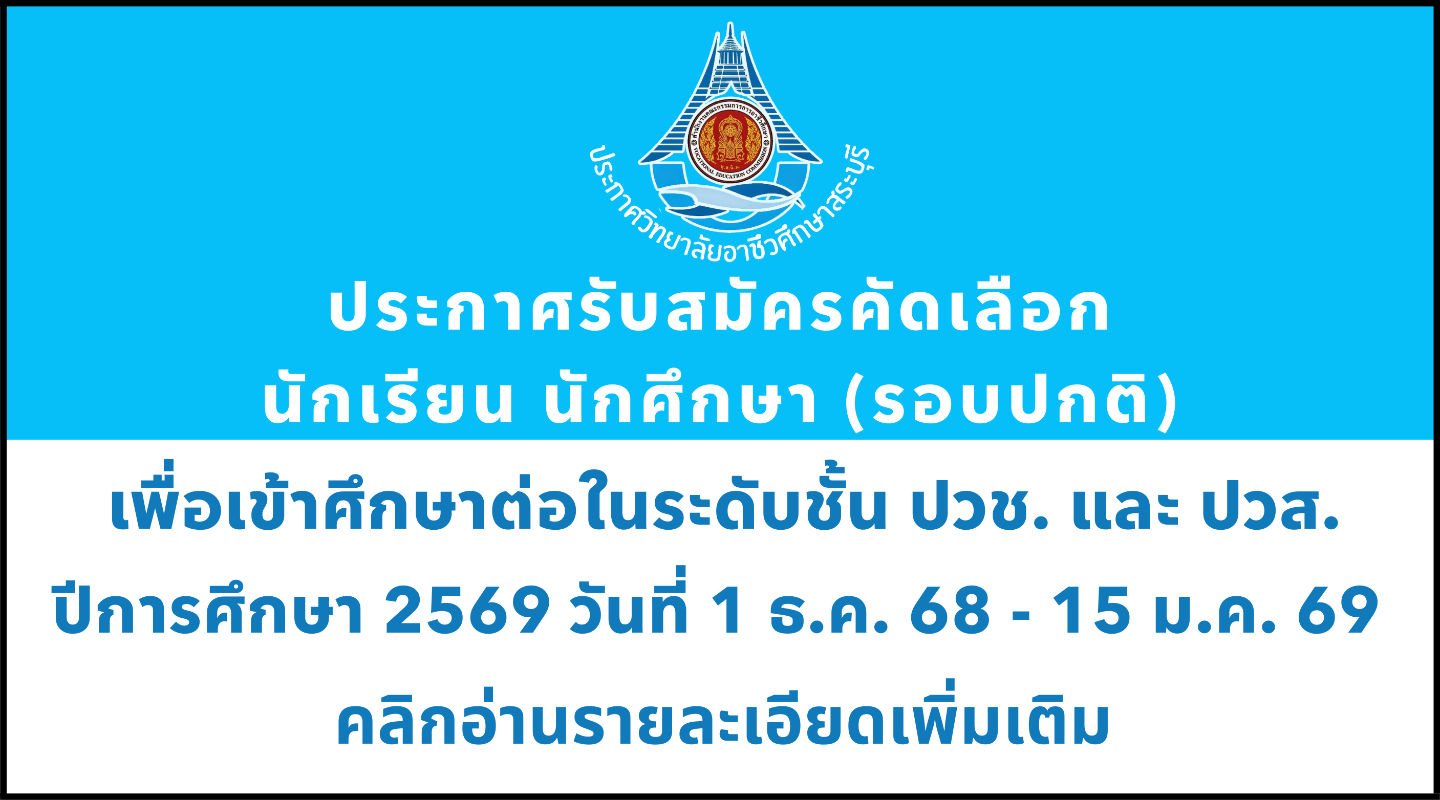 ประกาศรับสมัครคัดเลือก นักเรียน นักศึกษา (รอบปกติ) (3/ธ.ค./68)